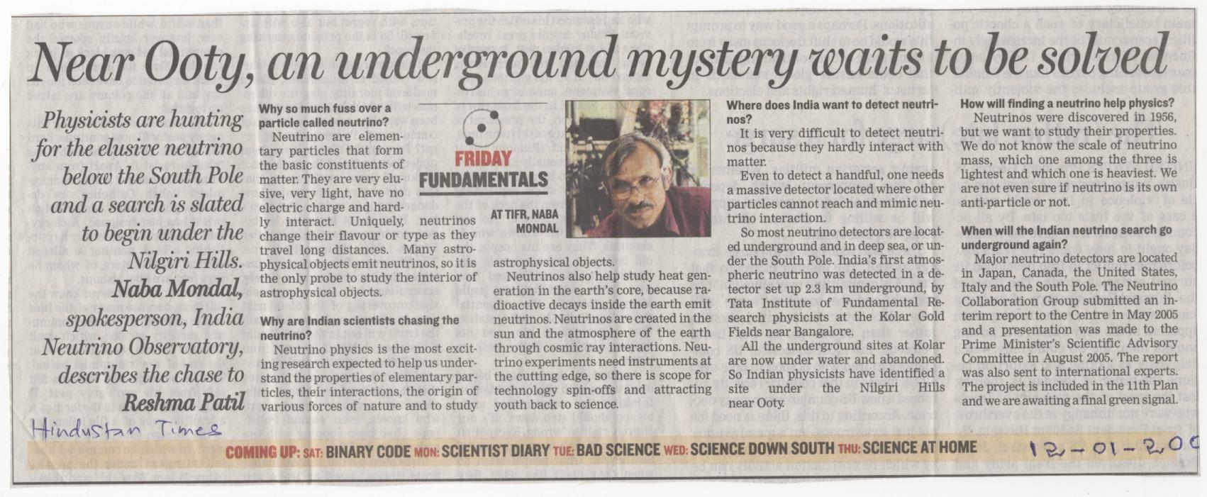 - INO: A mega project of Science and Engineering, Kalasalingam University, Anand Nagar, December 17, 2012