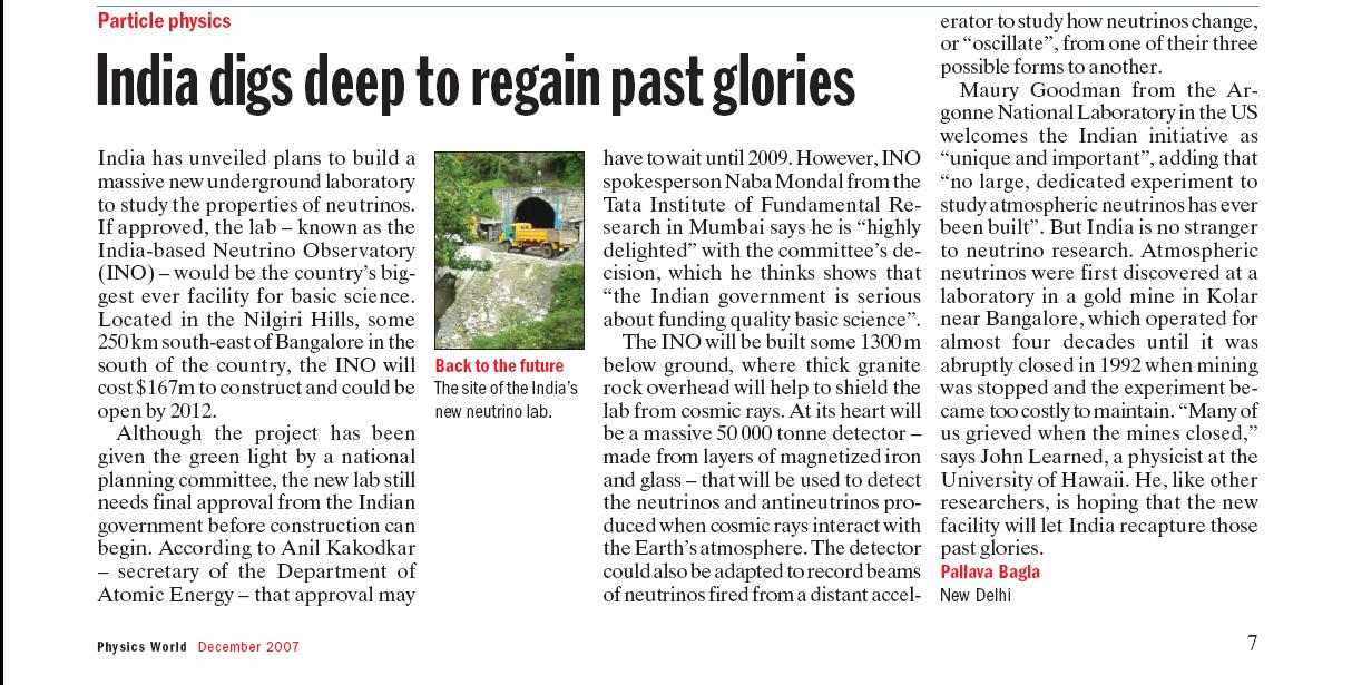 - The INO Project: A mine of opportunities in your backyard, PSNA College of Engineering and Technology, Dindigal, August 2, 2013