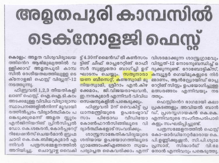 - Invited talk at VIDYUT 2012, National Level Multi Festival, Amrita Vishwa Vidyapeetam, Amritapuri, Kollam, Kerala, February 1, 2012, Press coverage